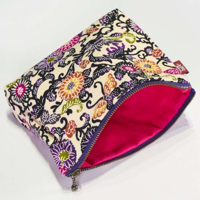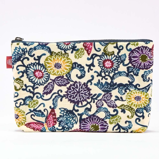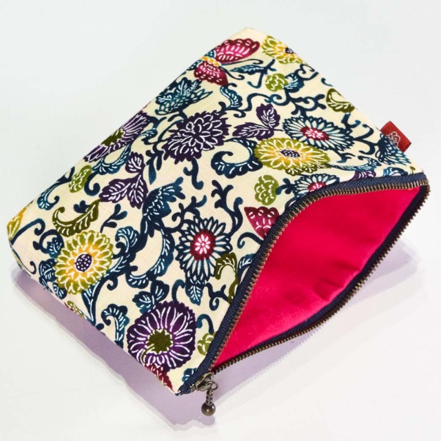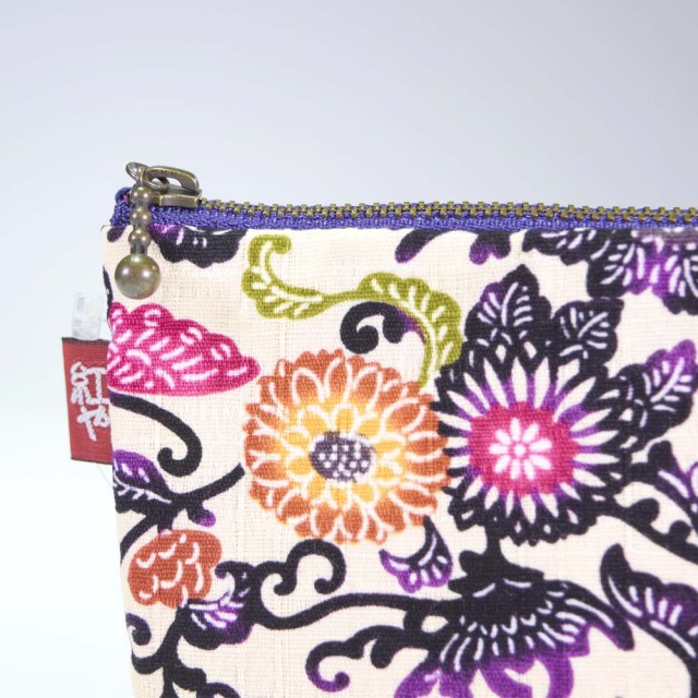 紅型柄のおしゃれなポーチ。かばんに入れて持ち運びにも便利なサイズです。沖縄のお土産にいかがでしょうか。