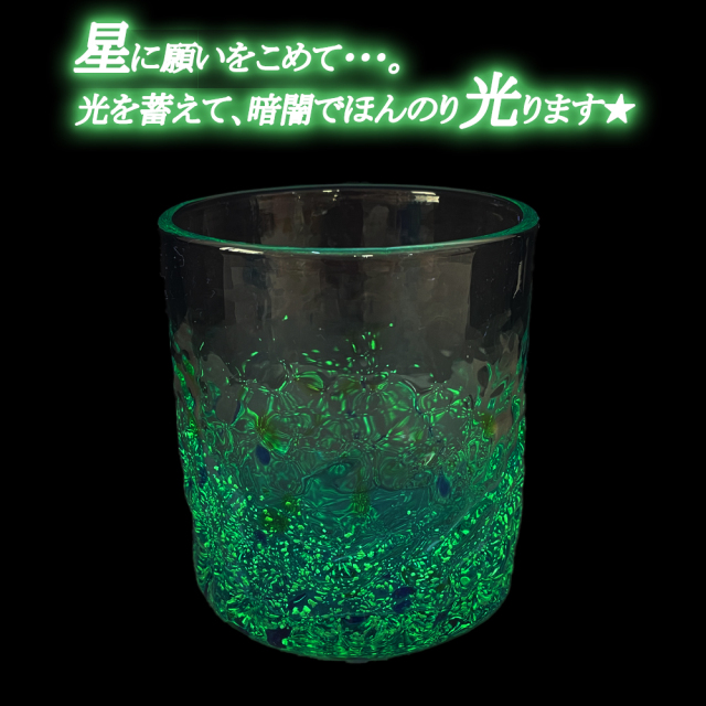 暗闇でも美しく輝く琉球ガラスホタル群星ロックグラス