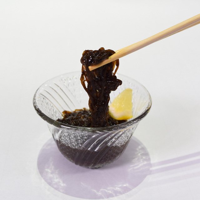 沖縄県うるま市、浜比嘉島を主たる産地として採れた天然もずくです。 天然もずくは養殖もずくとは違い、ぬめりが強く、太いものが多くもずく本来の味が楽しめるのが特徴です。 名前の由来 海中でゆっくりとゆらぐような動きから「水雲」「海雲」とも表現されたりします。 沖縄では、昔から方言で酢のりという意味「スヌイ」「スヌリ」等の呼び方も様々です。 |