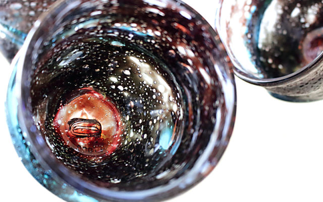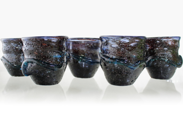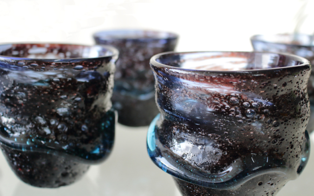 どんな泡になるのか、どの場所にどこまでの色味が出るのか、計算してつくることのできない1点ものガラスたち。