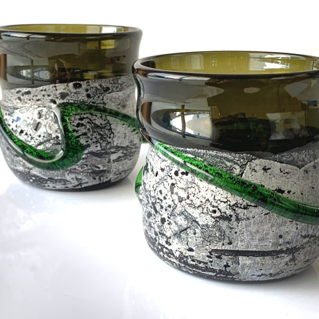 どんな模様になるのか、どのようにラインが出るのか、計算してつくることのできない1点ものガラスたち。