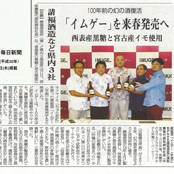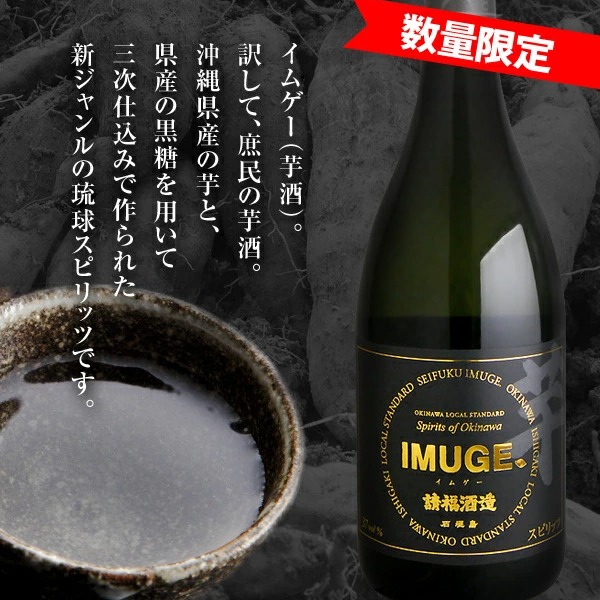 沖縄を代表する「泡盛」は、米の蒸留酒。 かたやIMUGE.は、甘藷(琉球芋)の蒸留酒。 では、芋焼酎かといえば、さにあらず。 「芋焼酎」は麹に水と酵母を加えて発酵させる一次仕込み、さらに甘藷(琉球芋)を加えて発酵させる二次仕込みで造られますが、IMUGE.は二次仕込みの後、さらに黒糖を加えて発酵させる三次仕込みを行います。 そのことからIMUGE.は、酒税法上、焼酎ではなくスピリッツに分類されます。 イムゲーのこの「甘藷(琉球芋)」に「黒糖」という組み合わせは、 現代ではほかに例がなく、画期的といえます。 それによってIMUGE.ならではの独特の味わいが生まれました。 では、その味わいは・・・ 口に含んだ瞬間、甘藷(琉球芋)に由来する柑橘の爽やかな香りと 果実・花のような華やかな風味を呈し 次に、鼻孔に泡盛に特徴的な バニラやカラメルのような甘くて重厚な風味が感じられます。 飲み口は軽く、黒糖焼酎のようなキレがある。 付け加えますと、初めて試飲した関係者はみな驚きました。 「えっ、琉球王朝時代のうちなんちゅーは こんな美味しい酒を飲んでいたのか!」と。 100年前に姿を消した幻の酒 IMUGE.(イムゲー)が今ここに蘇りました。 |