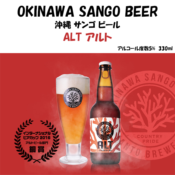 ろ過処理を一切しないためにビール酵母が生きている状態で充填されていて新鮮さと絶妙な味のバランスを保つために要冷蔵タイプのビール。 ミネラル豊富で芳醇爽快なビール本来の味が楽しめます。 >>セゾン[期間限定]<< 12月でも気温27度を記録する沖縄で1年中楽しめるビールをと考えセゾンビールを造りました。 夕日を見ながら一日の疲れを癒し、みんなと語らいながら楽しめるそんなビールです。 グラスに注ぐとフルーティーなアロマが感じられ、口に含むとやんわりとしたオレンジのようなジューシーなフレーバーと少量の酸味がうまく調和し、すっきりとした爽やかな余韻を楽しめます。 キリッとした苦味と軽いボディにアルコール度数も4.5%と低めなので、ハムやチーズ、カルパッチョなどのシンプルな味わいの料理とも相性が良く、ビールの苦みが苦手な方や女性方にもおすすめのビールです。 ※ 「セゾン」は数量限定生産のビールです。 >>IPA<< 一番人気がある「アメリカン IPA」スタイルをベースに柑橘系の香りのするホップを大量に使用し、爽やかな香りを強調しながらも、切れの良い苦味を楽しめる 沖縄の気候にあった IPA を目指して開発しました。 柑橘系の豊かな香りとホップの苦味が程よくマッチング、肉料理・油料理によく合います。 >>アルト<< アルトは、エールビール特有の深みのある赤褐色と上品な香りが特徴のドイツのアルトビールタイプです。 旧商品同タイプは、インターナショナル・ビアカップ7年連続受賞し、「アジア・ビアカップ2017」ジャーマンエール部門では「銀賞」を受賞した高品質なビールです。 上品な苦味とコクのバランスが特徴のアルトには肉料理がおすすめです。 >>ケルシュ<< 白ワインを思わせるフルーティーな風味が特徴のドイツのケルシュタイプビール。 旧商品同タイプは、インターナショナル・ビアカップ5年連続受賞、世界大会のワールド・ビアカップでは銀賞を射止めた世界が認めたビールです。 爽やかな切れ味と喉ごしの良さが自慢のケルシュには、魚料理がよく合います。 >>ブラックエール<< ブラックエールはイギリスのスタウトのような黒ビールを目指して、試行錯誤で完成した全く新しいタイプの黒ビールです。 日本人はビールを8度以下に冷やして飲むのが一般的ですが、ブラックエールは10度〜11度で飲むと香りと風味が引き立ち、一層おいしく召し上がっていただけます。今までになかった軽いタイプの黒ビールなので女性にも飲みやすいと人気です。 すっきりとした喉越しはどんな料理にもよく合います。 特に、寒い季節の煮込み料理との相性は抜群です。 「インターナショナル・ビアカップ2016」にて銀賞を受賞! 毎年開催している審査会では世界で一番古い歴史を持つ「インターナショナル・ビアカップ」のフリースタイルダークエール部門で、ブラックエールは銀賞を受賞いたしました。 ※フリースタイルダークエール部門では、伝統的なビアスタイルにとらわれずブルワーのオリジナリティを重視してつくられたエール(16℃以上の高温発酵)が審査されます。 |