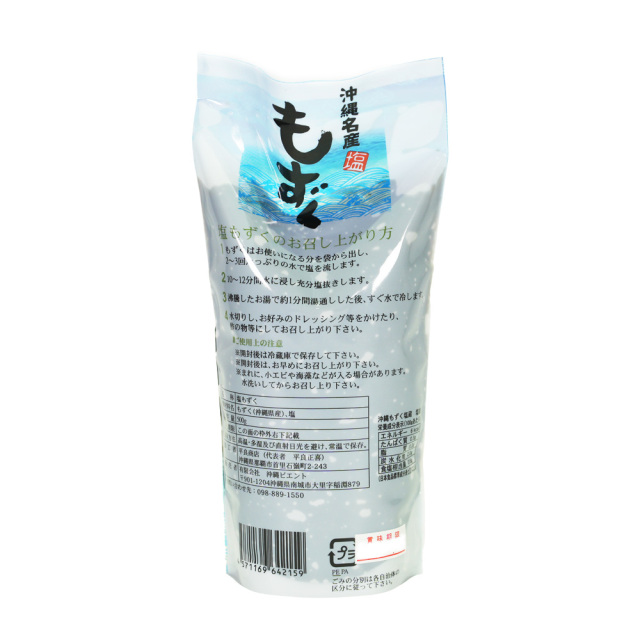 沖縄の塩を使用した、栄養価の高いもずくです。 そのままでもお召し上がりいただけますし、料理にも使えて様々なアレンジが楽しめます。 もずく天ぷら、酢の物、お味噌汁などのお料理にオススメです。 |