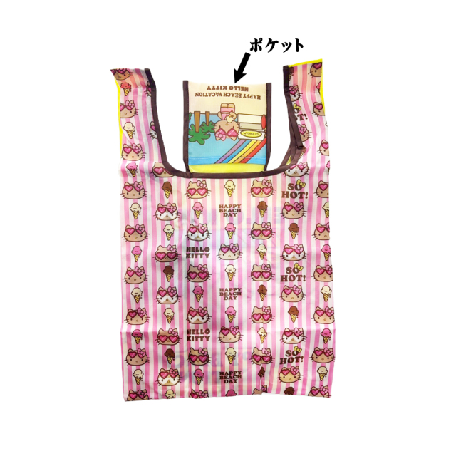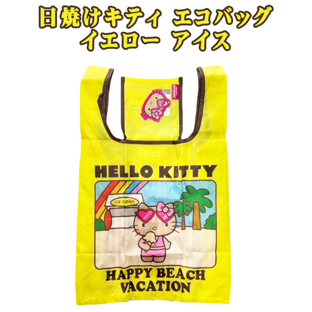 サンリオの人気アイテム「日焼けキティ」シリーズ! エコバッグ M! 色は「ピンク」と「イエロー」 |
