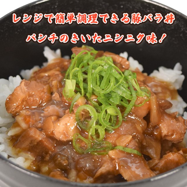 力飯(くんちめし)シリーズ。パンチのきいたニンニク味。レンジで簡単調理できる豚バラ丼。
