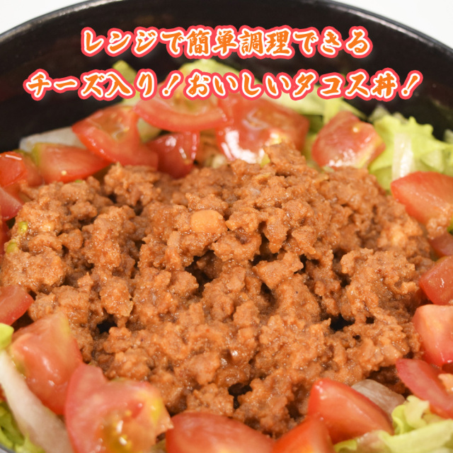 力飯(くんちめし)シリーズ。チーズ入り!トッピングなしでもすぐに食べられるおいしいタコス丼。