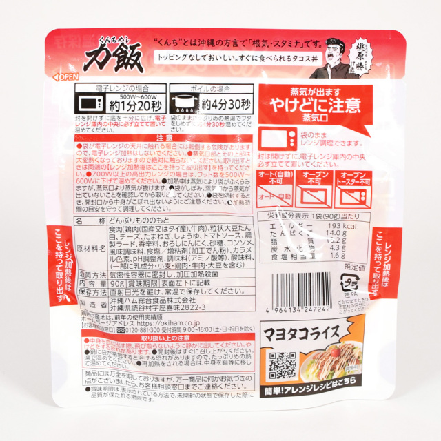 | 商品名 | 力飯(くんちめし)タコス丼 90g |