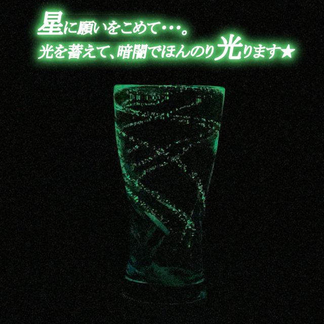沖縄のお土産に最適な琉球ガラスを使った暗闇で光るホタル石入りのビアグラス!