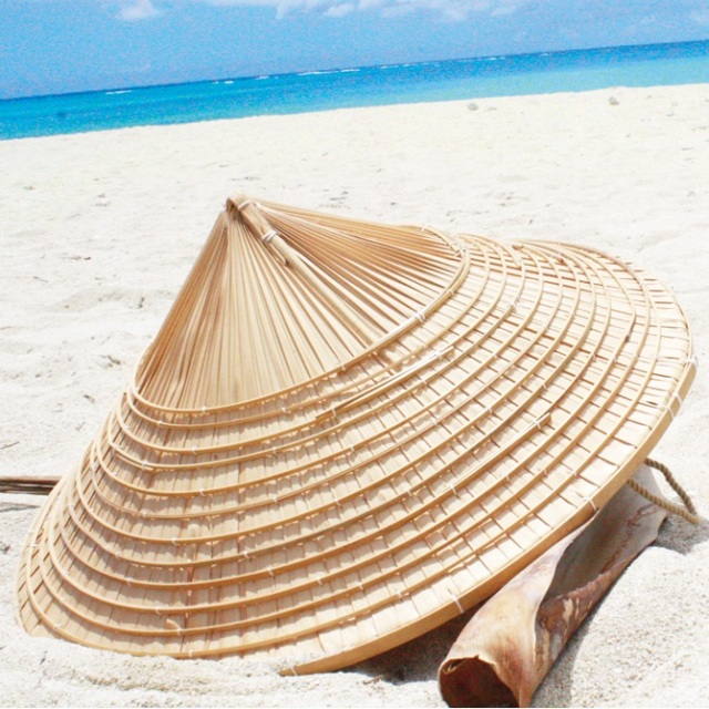 被るときはクバの端っこが頭に当たるので手拭いか何かを敷いてかぶったほうがいいですね。坊主系は痛いかな!?