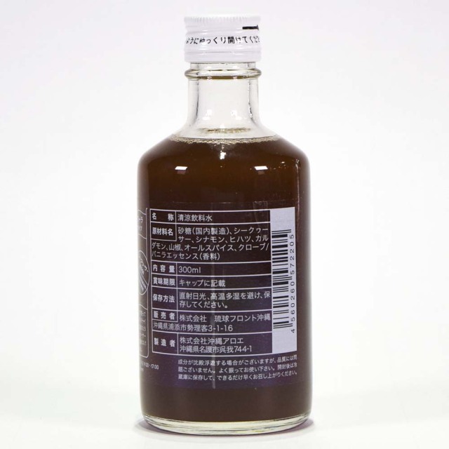 原材料に、沖縄県産「シークヮーサー」や沖縄県と鹿児島県産のサトウキビから作られた「島砂糖」。 そのほかにも、話題のスパイス「ヒハツ」や「シナモン」などの数種類のハーブをブレンドした体に優しい「薬膳コーラ」です。 アレルギー特定原材料28品目不使用です。 【お召し上がり方】 濃縮タイプなのでお好みで6倍~10倍の炭酸水で割ってお召し上がりください。 牛乳で割るとチャイ風な飲み物が出来上がります。 |