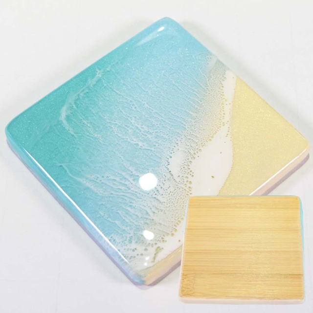 美しい海をレジンアートで立体感を出し、リアルに表現されているのが特徴のコースター。プレゼントなどにいかがですか。
