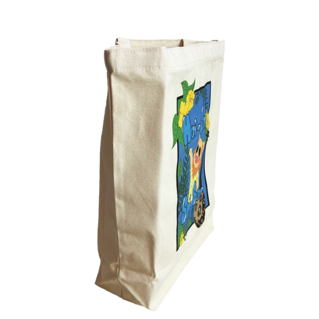 沖縄らしいデザインで持ち歩こう! 可愛いシーサーと三味線とハイビスカスが描かれたトートバッグ 綿100%なので繊維が柔らかく、ふんわりとした優しい肌触りです。 |
