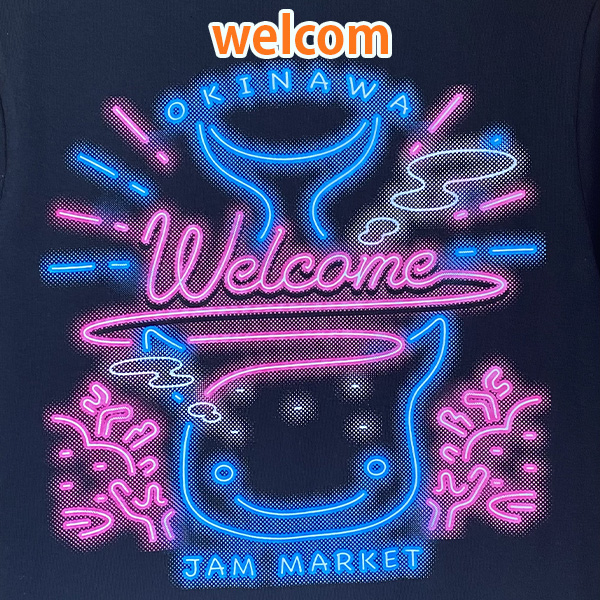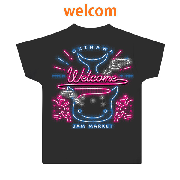 [花火] 夏の風物詩の花火。 花火の中にジンベエザメやマンタの形をした花火があり、「こんな花火があったらいいなぁ」という思いから生まれたデザインです。 [welcome] バックプリントがネオンサインのようなデザイン!! 「ようこそ!沖縄へ」の歓迎たっぷりの1枚。 前面は、左胸にワンポイントのデザイン!! |
