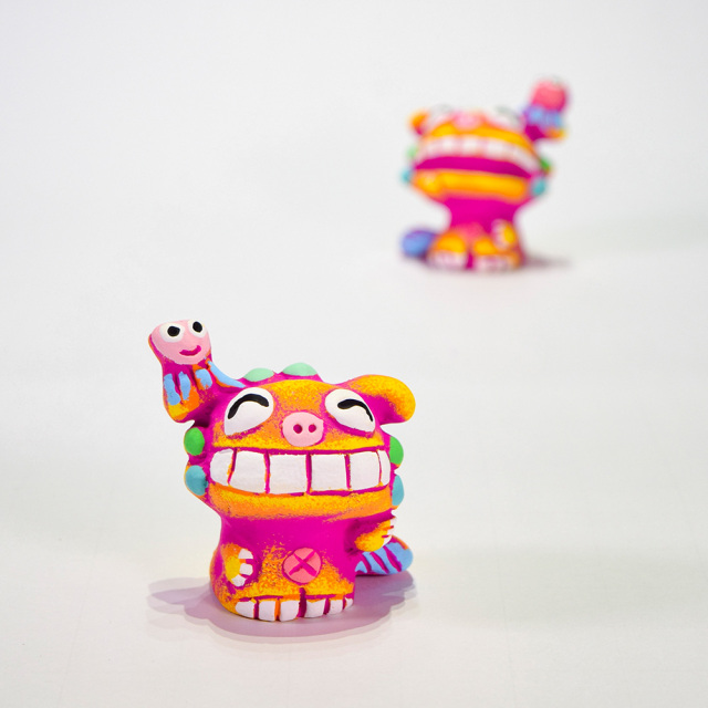 にっこり可愛らしくカラフルな色が特徴のシーサー。お部屋の中に飾れる手のひらサイズ。