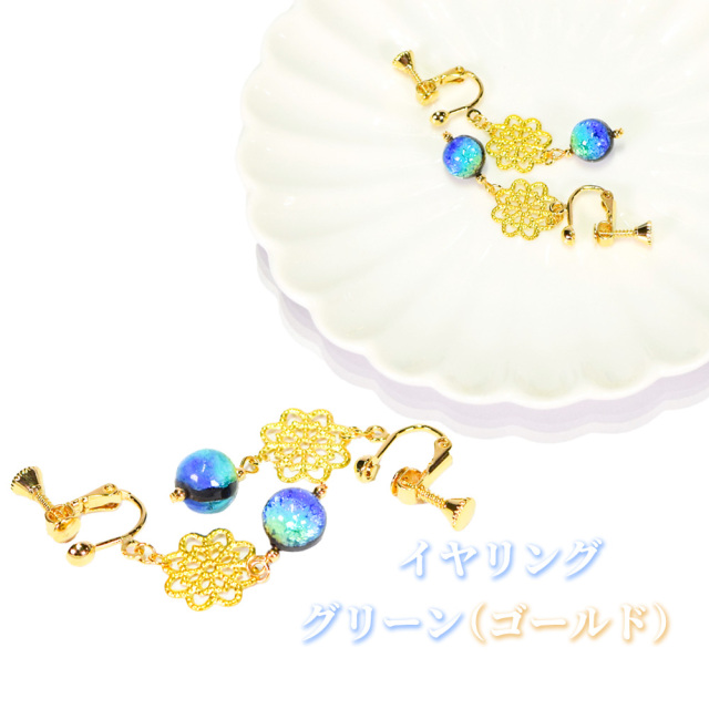 | 種類/玉色 | ピアス ブルー / ピアス グリーン / イヤリング ブルー / イヤリング グリーン |